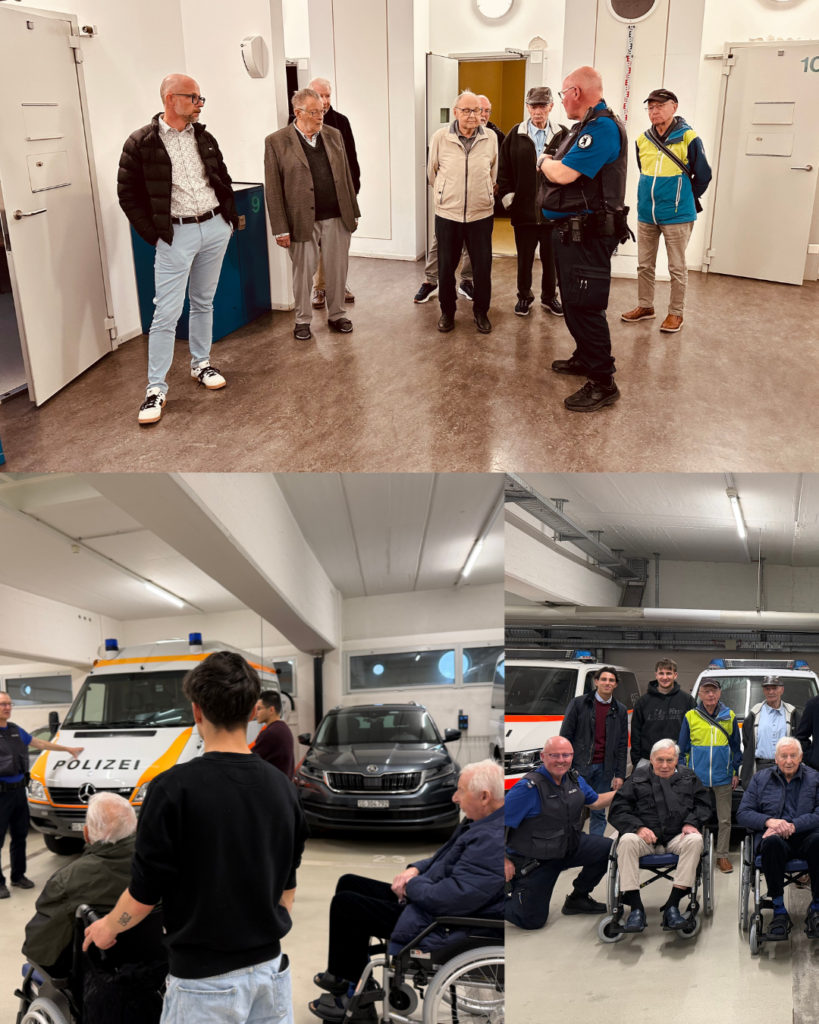 Wann hat man schon mal die Möglichkeit, (freiwillig) in ein Polizei-Auto oder in eine Untersuchungshaft-Zelle zu sitzen? Bei uns war das am Mittwoch der Fall: Unser Männerstamm durfte eine Besichtigung bei der St.Galler Stadtpolizei machen. Ein Ausflug der etwas anderen Art, der auf reges Interesse stiess. Und weil das Wetter auf dem Nachhauseweg ziemlich verrückt spielte, gab es sogar noch einen Chauffeur-Service – ganz im Sinne des bekannten Spruchs «Dein Freund und Helfer». Ein grosses Dankeschön an die Stapo!